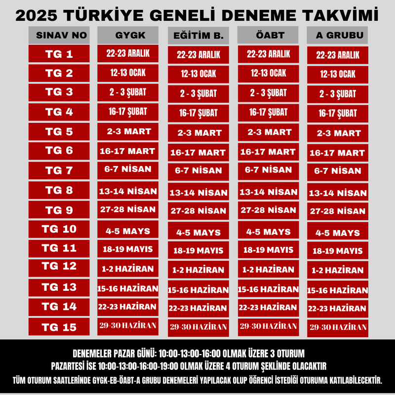 2025 KPSS GYGK-EB-ÖABT-A Grubu Dışarıdan Katılanlar İçin Sınav Takvimi